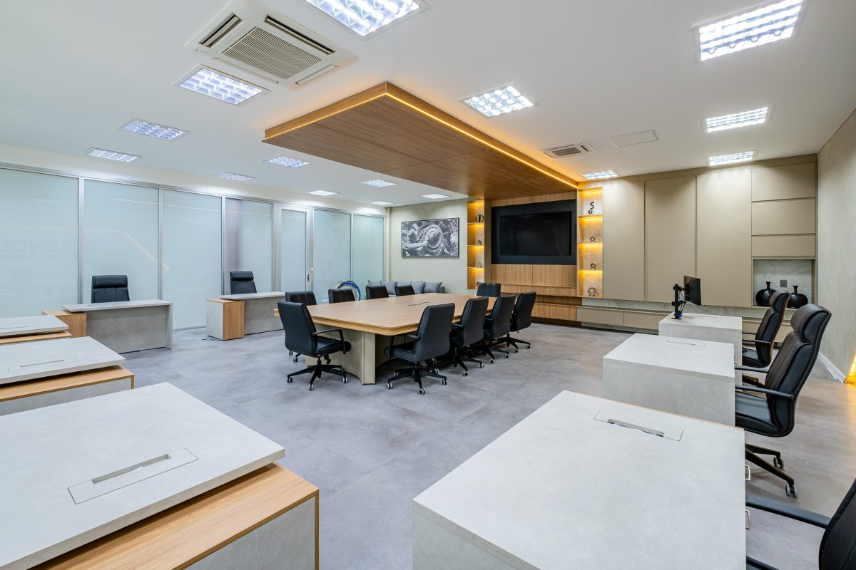 Reformamos toda a estrutura, incluindo recepção, salas de reunião, áreas de convivência e fachada. Criamos ambientes modernos, funcionais e alinhados à identidade da empresa, oferecendo mais conforto e bem-estar para os colaboradores e uma experiência acolhedora e profissional para os clientes.